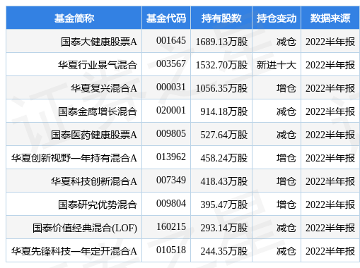 其中持有数量最多的基金为国泰大健康A,目前规模为32.33亿元,最新净值3.238(8月9日),较上一交易日下跌0.12%,近一年上涨3.19%。该基金现任基金经理为徐治彪。